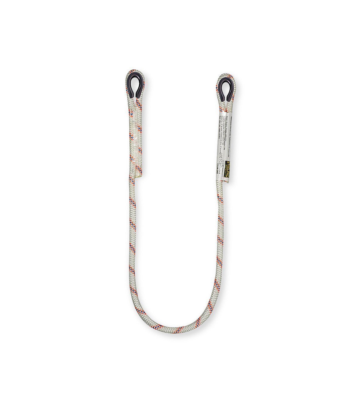 Características: Cuerda de 12mmØ con dos gazas laterales con guardacabos. Elemento de amarre de longitud fija (1,5 metros). Guardacabos para reducir el roce entre los mosquetones y la cuerda, y facilitar el uso con los mosquetones. Usos y empleo: como elemento de amarre y de posicionamiento (retención y sujeción), impidiendo alcanzar los puntos donde se pueda producir una caída libre.