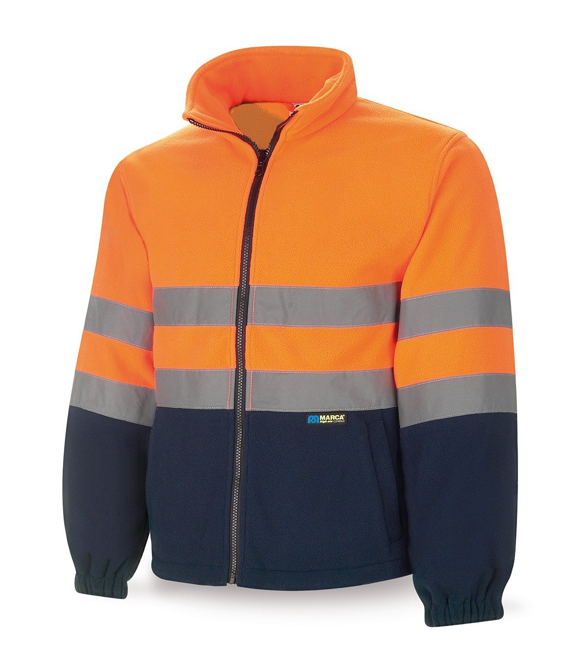 Forro polar de alta visibilidad bicolor (naranja/azul marino y amarillo/azul marino).